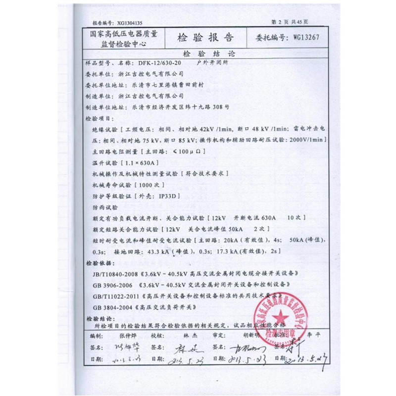 戶內(nèi)交流箱型固定式金屬封閉開關(guān)設(shè)備檢驗(yàn)報(bào)告