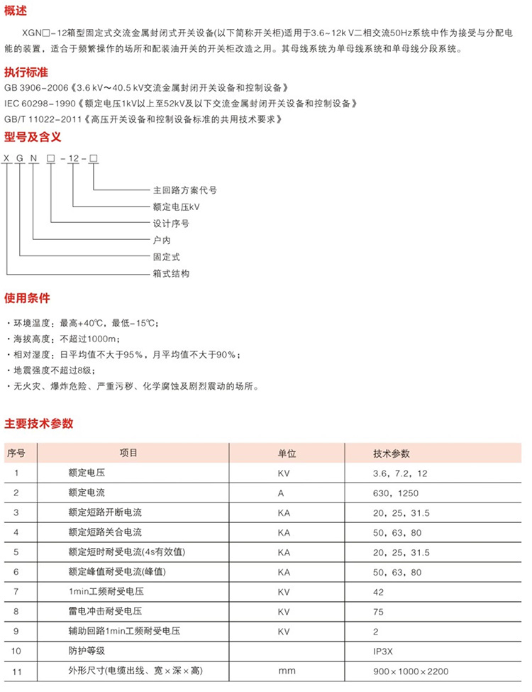 • XGN-12箱型固定式金屬封閉開關(guān)設(shè)備